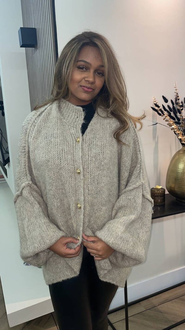 MUSTHAVE// deze heerlijke knit met balonnen mouwen afgewerkt met gouden knopen is oneindig te combineren. Winter musthave voor jin e kast!