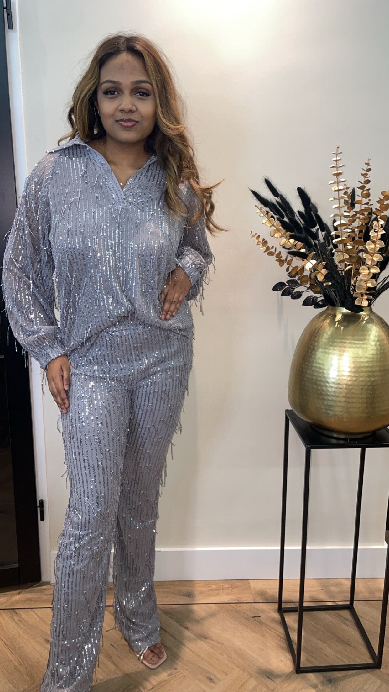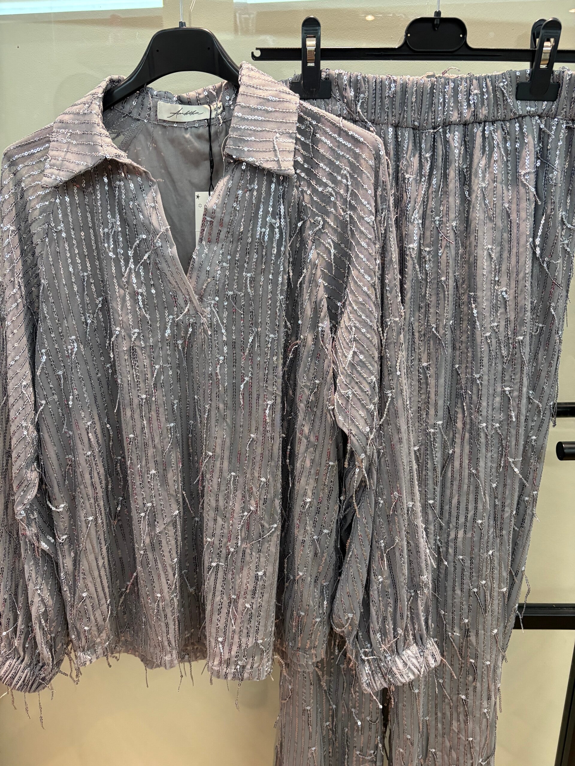 PARTY COLLECTIE// 2 delige set blouse + broek beschikbaar in het grijs en cremé.